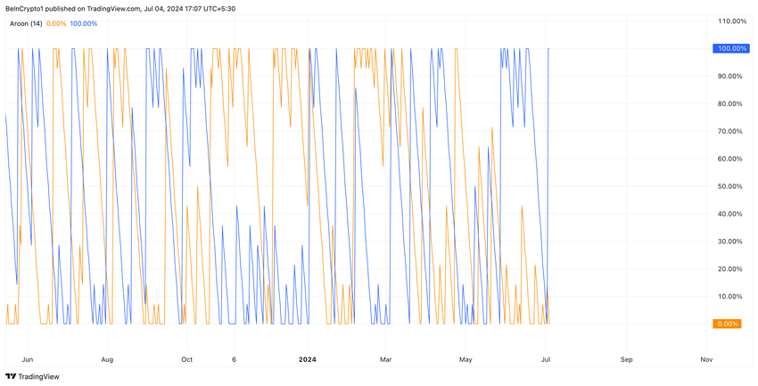 Omvänt ligger HBARAroon Up Line på 0 % vid presstillfället. Detta indikerar svaga försök att initiera en uppåtgående trend och att myntets senaste topp nåddes för länge sedan.