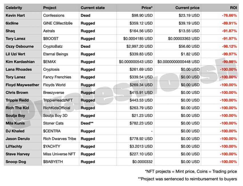 “I slutet av dagen misslyckas dessa projekt vanligtvis eftersom individerna bakom dem bara inte bryr sig. Antingen får de en påse för att marknadsföra och lägga upp en video eller så samordnar deras team en försäljning. I de flesta fall finns det inget verkligt intresse eller någon plan för projektet. […] Jag skulle bli förvånad om någon av de kändisar som marknadsförde dem ens vet vad som pågår”, förklarade Moca.