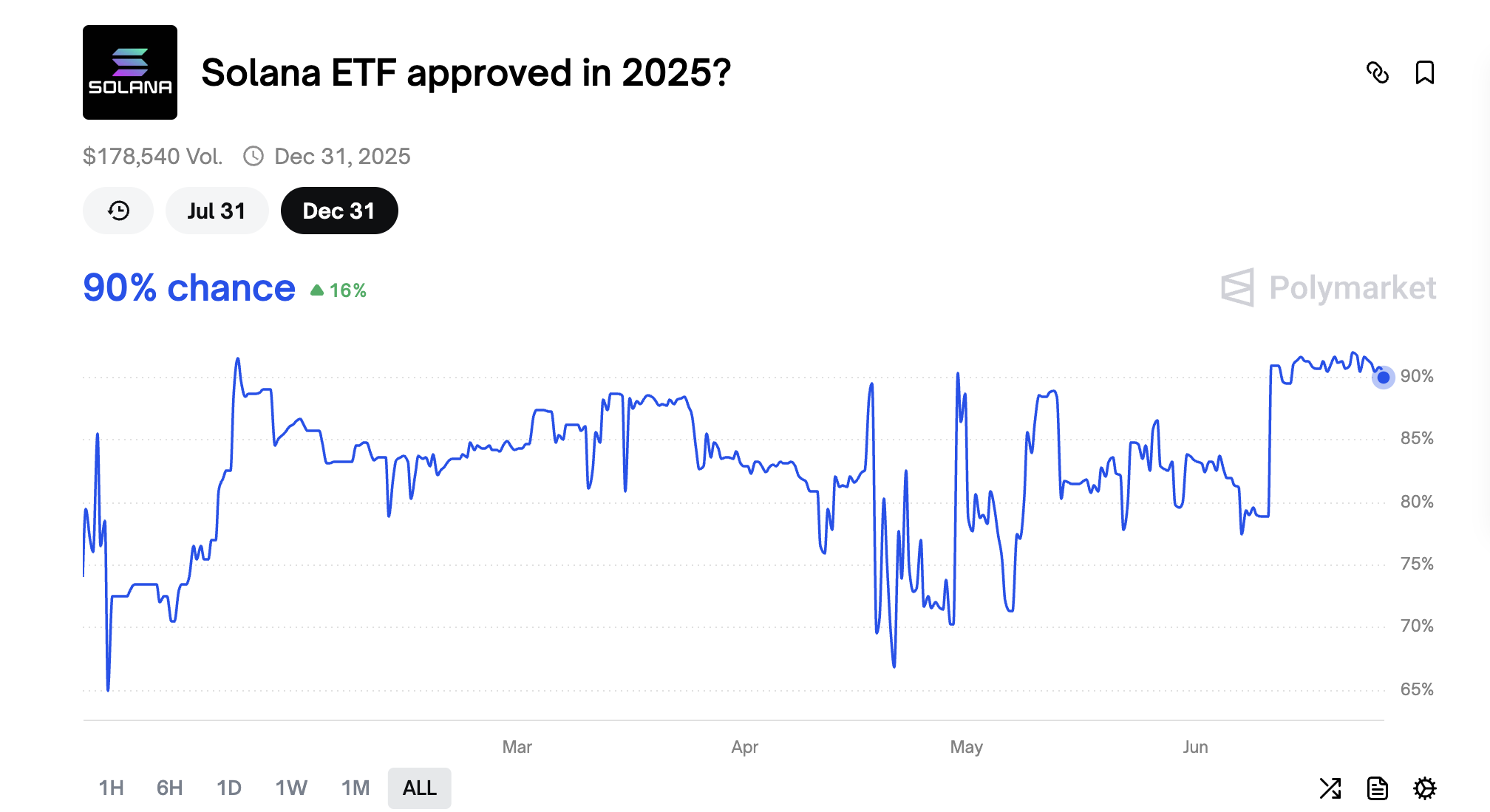 De senaste uppgifterna från förutsägelsemarknads plattformen visade att godkännandechanserna har nått 90%, vilket ytterligare indikerar växande marknadstro.