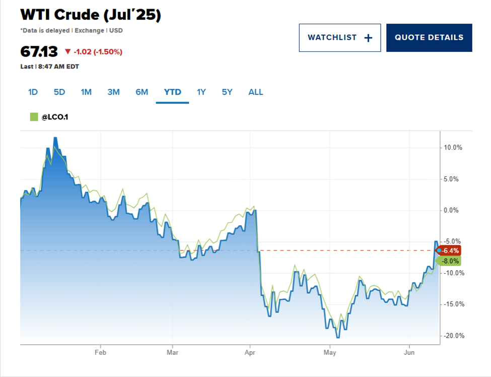 För perspektiv, oljepriserna steg 4% den 11 juni och nådde en tvåmånadershögsta när spänningarna ökade i Mellanöstern. Uppgången kom när källor avslöjade att USA förberedde sig för att evakuera sin ambassad i Irak på grund av ökade säkerhetsbekymmer.