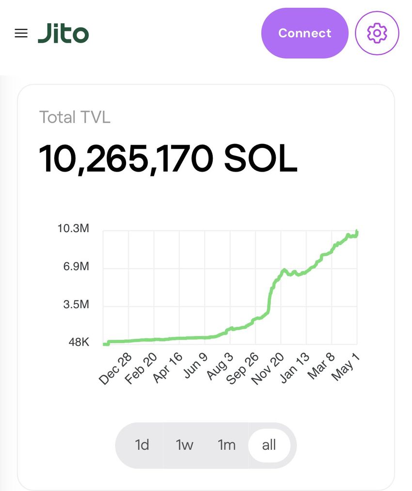 Jitos TVL. Källa: X/jito_solana X/jito_sol