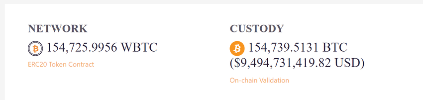 WBTC-saldo på Ethereum. Källa: WBTC. Nätverk