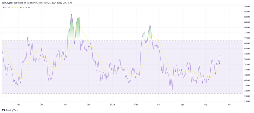 För närvarande är KAS i den hausseartade zonen ovanför det neutrala märket vid 50.0 men under den överköpta tröskeln. Detta kommer att ge altcoin tillräckligt med utrymme för tillväxt när vi går vidare.