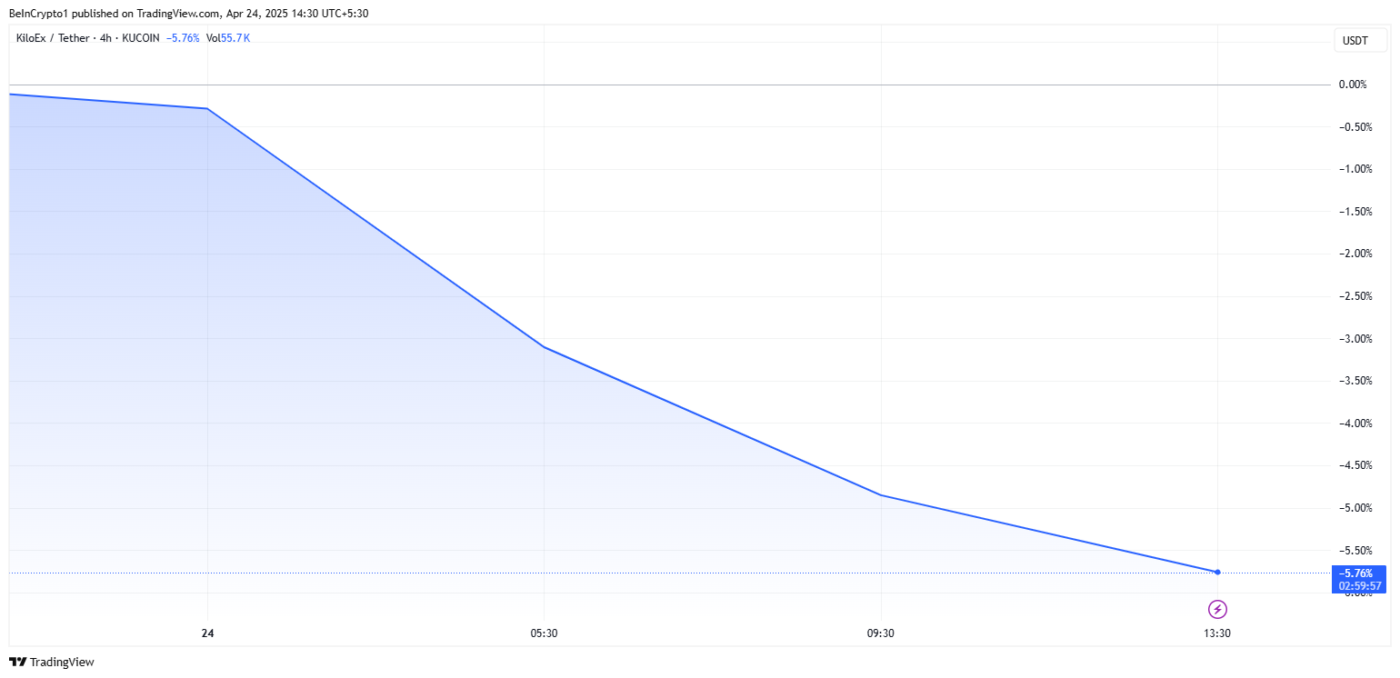 Trots nyheterna om återupptagning och kompensation, har KiloExs inhemska token, KILO, sjunkit med över 5 %. Vid tidpunkten för denna skrivning handlades den för 0,0425 USD på CoinGecko.