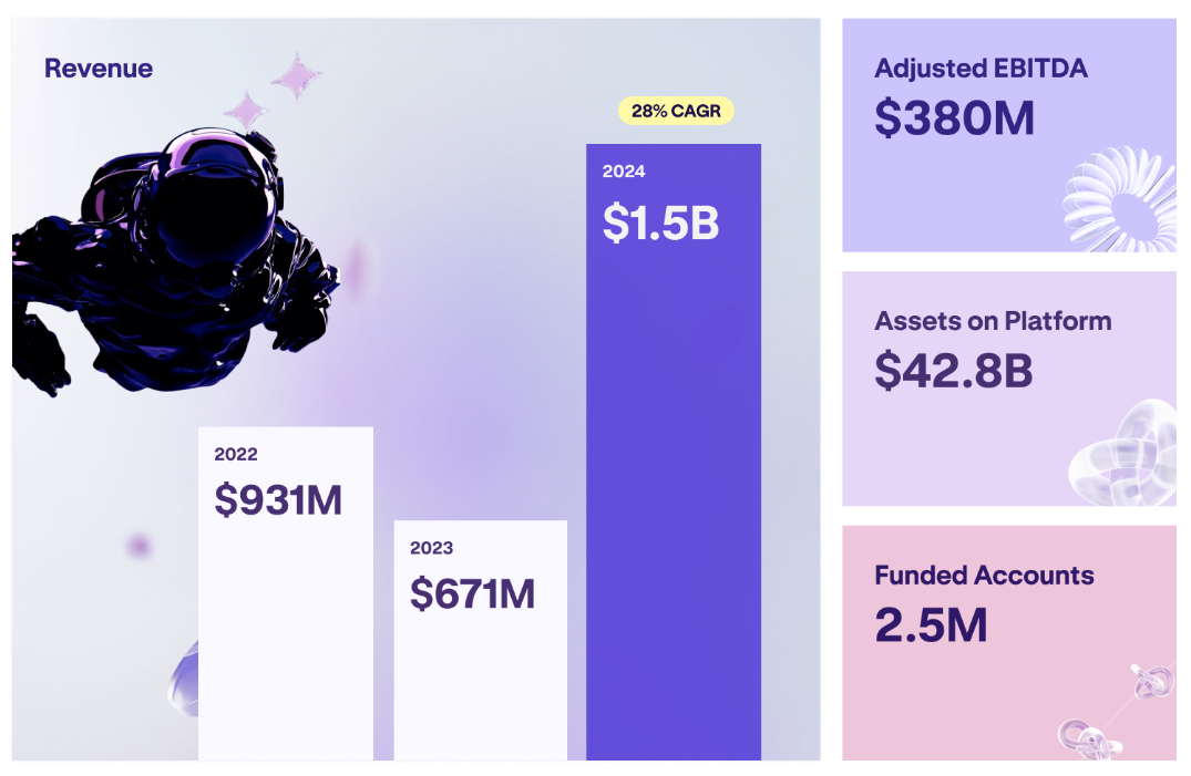 År 2024 rapporterade plattformen 380 miljoner USD i resultat före räntor, skatter, avskrivningar och amorteringar (EBITDA), drivet av 665 miljarder USD i handelsvolym.