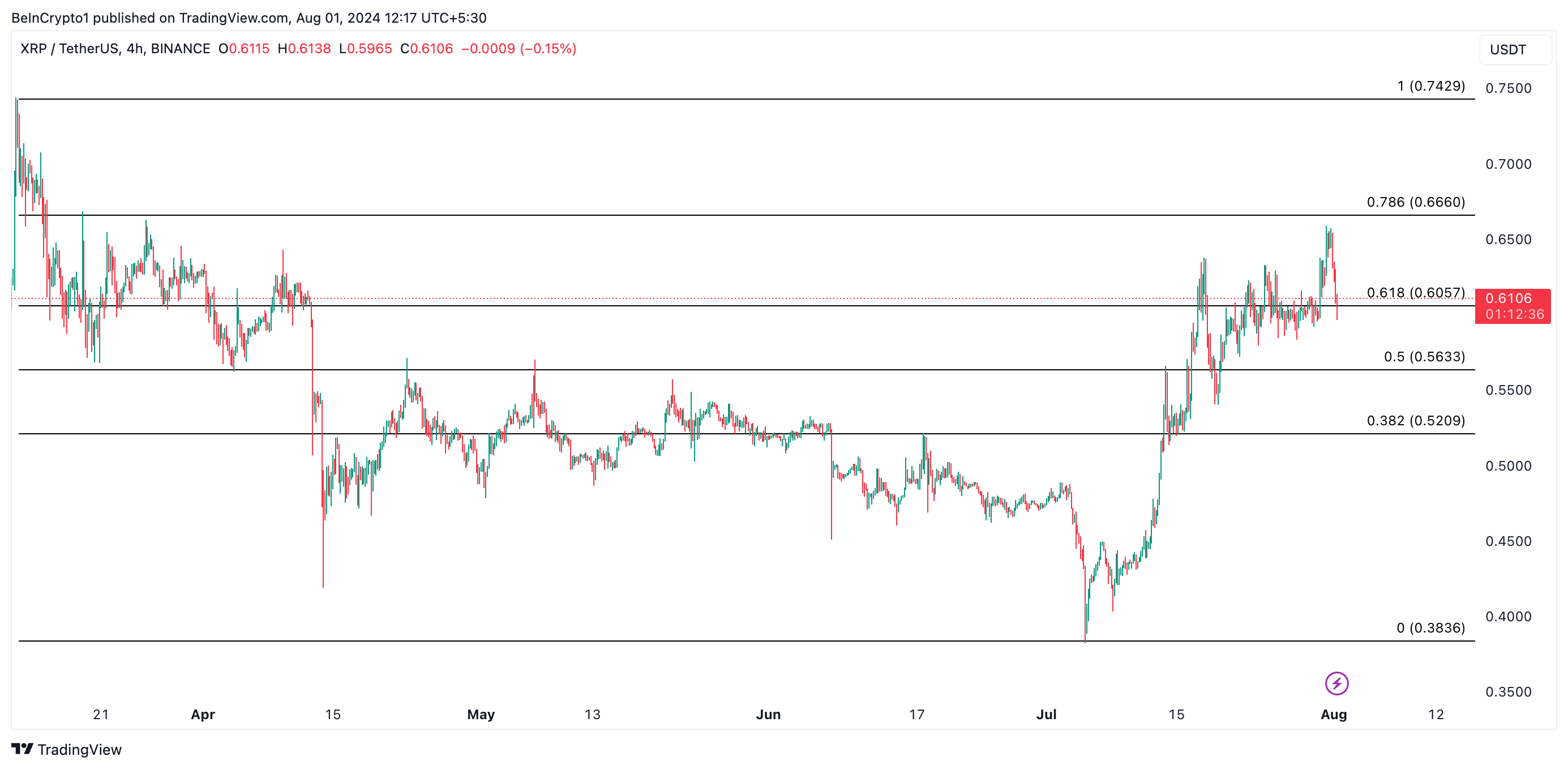 Vid skrivtillfället handlas XRP för $0,60. Altcoinens pris har sjunkit med 6% under de senaste 24 timmarna. Under den perioden uppgick handelsvolymen till 27 miljoner dollar, en minskning med 27%.