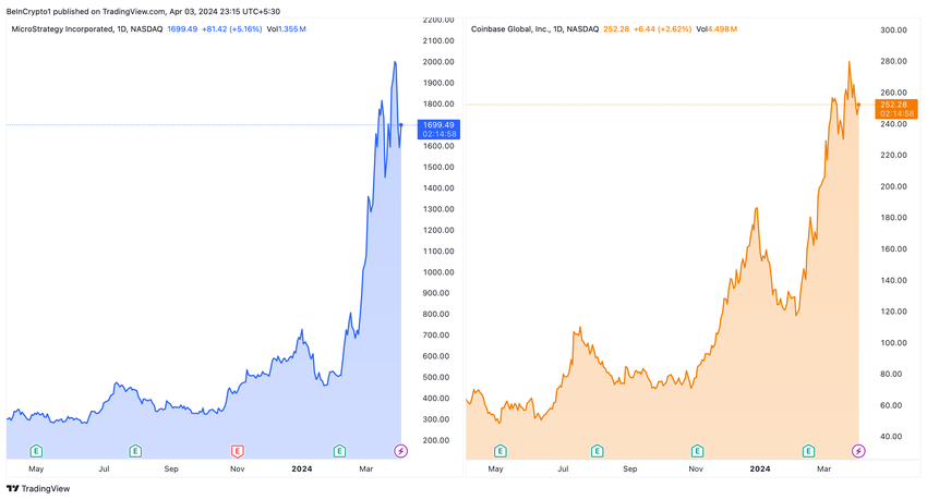 Båda företagen har upplevt en fyrfaldig ökning av sina aktiekurser under de senaste tolv månaderna, vilket återspeglar det blomstrande intresset för digitala valutor.