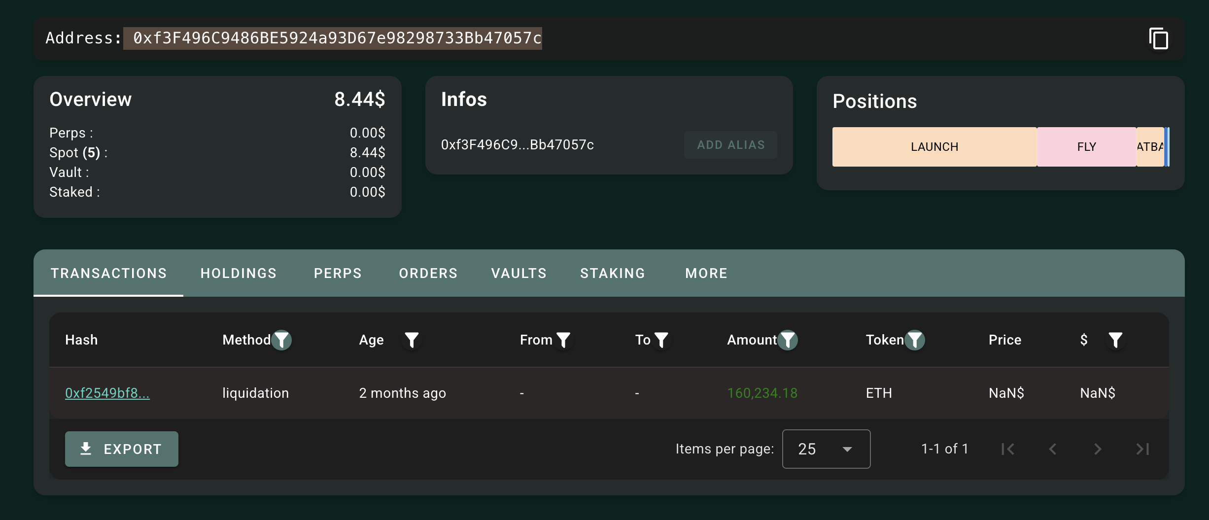 Samtidigt har handlaren inte öppnat några positioner på Hyperliquid sedan slutet av mars.