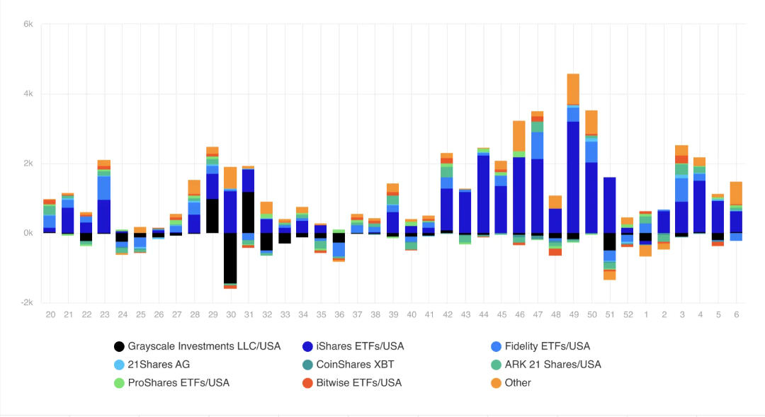 Men marknadskorrigeringarna under de fem handelsdagarna såg AUM (förvaltade tillgångar) för ETP:er sjunka till 163 miljarder USD. Detta representerar en minskning på cirka 10 % från rekordhöga 181 miljarder USD som etablerades i slutet av januari.