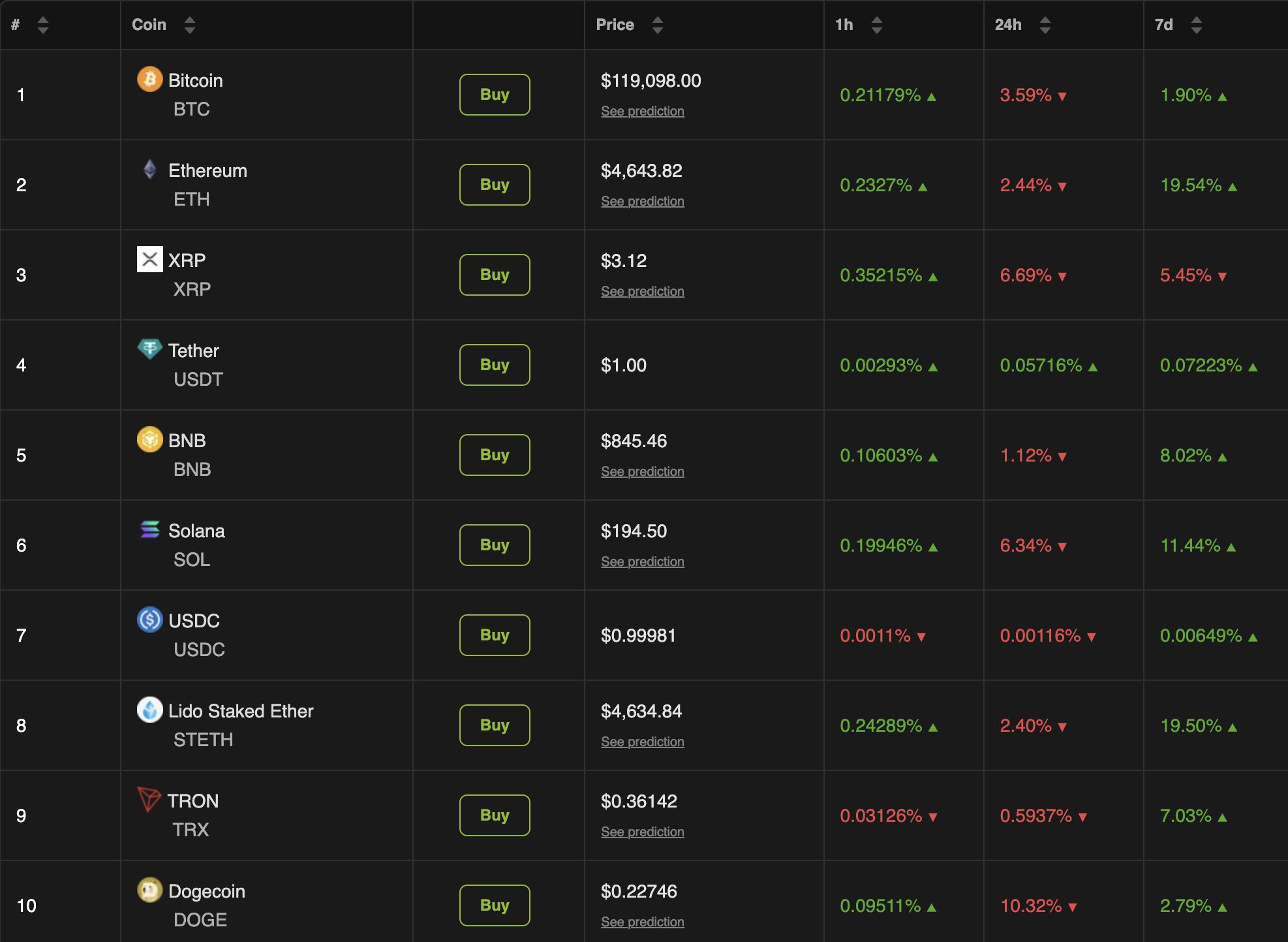 Bitcoin (BTC) sjönk till 119 098 USD vid pressens tidpunkt, efter att ha nått ett nytt all-time high på över 123 700 USD igår.