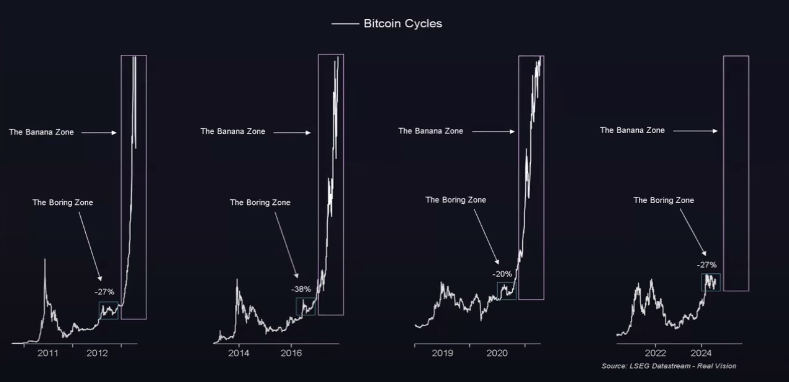 “Det som kommer härnäst är bananzonen. Jag vill inte att du ska missa det eftersom du fastnar i de kortsiktiga tidshorisonterna för handlare på Twitter,” förklarade Pal.