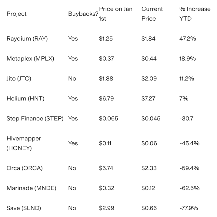 Jupiter har åtagit sig att använda 50 % av avgifterna för återköp, uppskattat till 250 miljoner USD årligen. Nyligen övergick detta projekt Raydium och blev Solanas näst största protokoll.