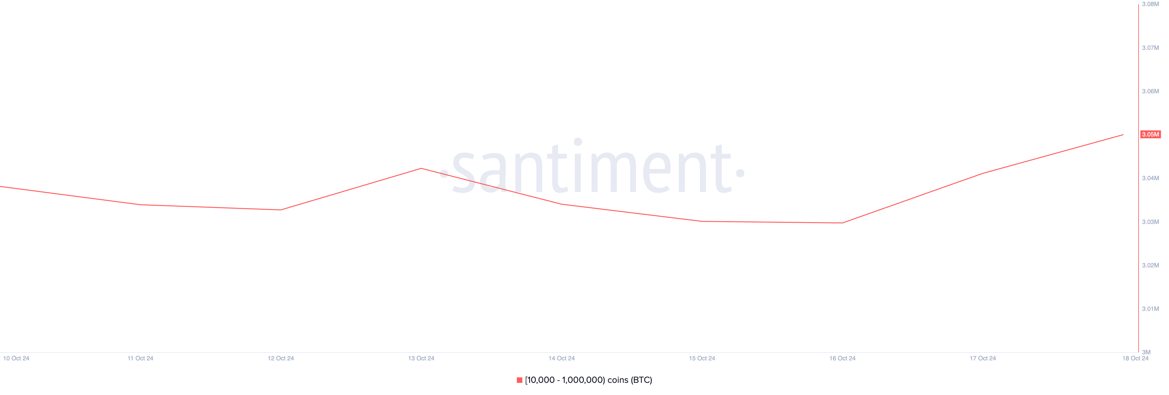 Under de senaste sju dagarna har kryptovalar som håller mellan 10 000 och 1 000 000 mynt lagt till 20 000 mynt värda över 1,35 miljarder USD till nuvarande marknadspriser. Denna grupp av BTC-investerare innehar för närvarande 3,05 miljoner mynt.