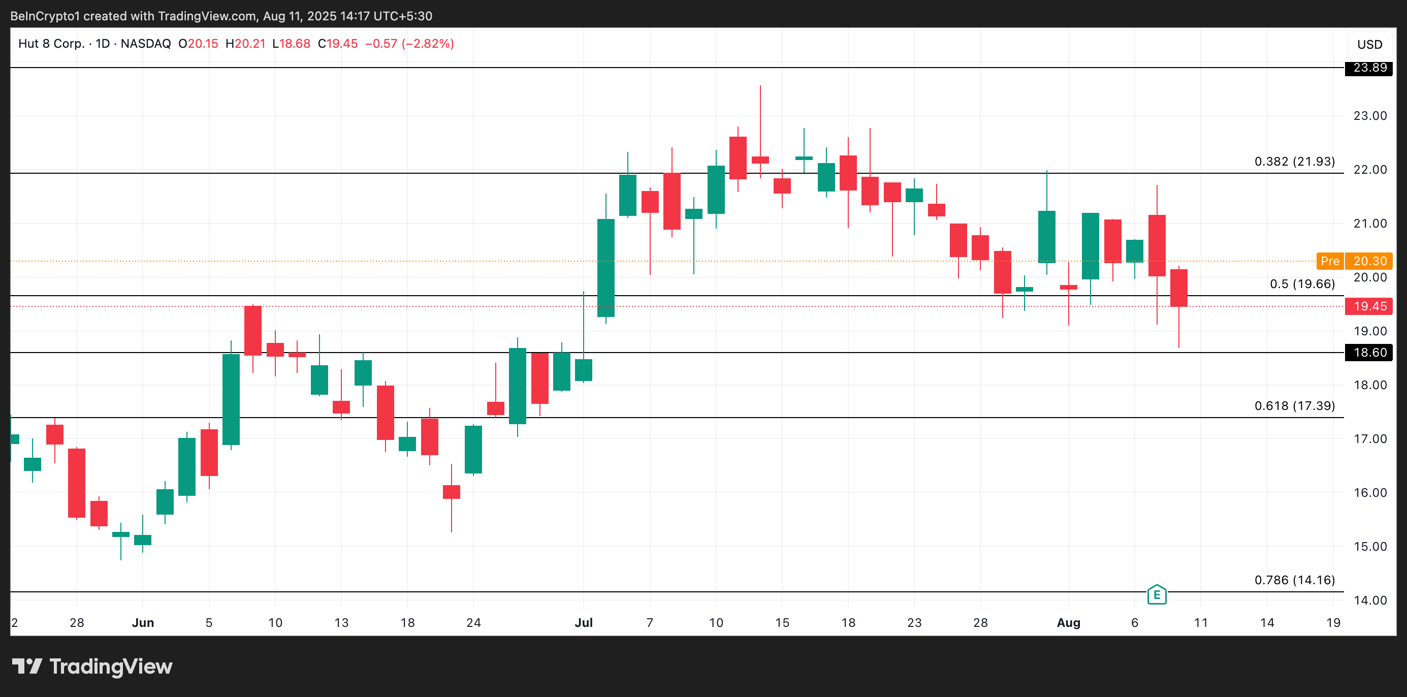Under sin senaste handelsdag i fredags stängde Hut 8 på 19,45 USD, ner 2,85 %. Men i förhandel idag har aktien stigit till 20,30 USD. Om köpmomentum fortsätter kan priset stiga mot 21,93 USD.