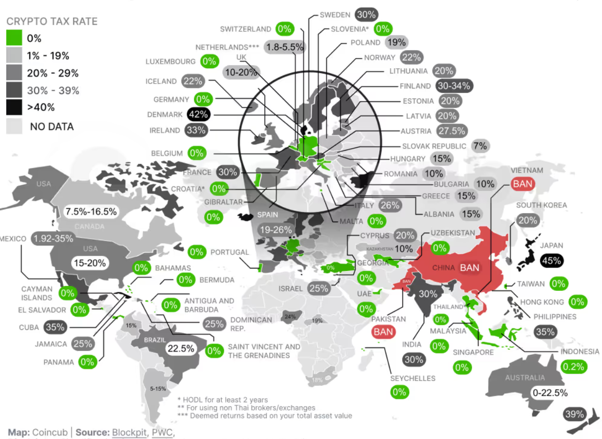 Medan USA skärper sitt grepp om kryptovalutaskatt, lättar andra länder på restriktionerna. Tjeckien meddelade nyligen planer på att avskaffa kapitalvinstskatt på krypto som har hållits i över tre år. Transaktioner under 4 200 USD årligen behöver inte längre rapporteras.