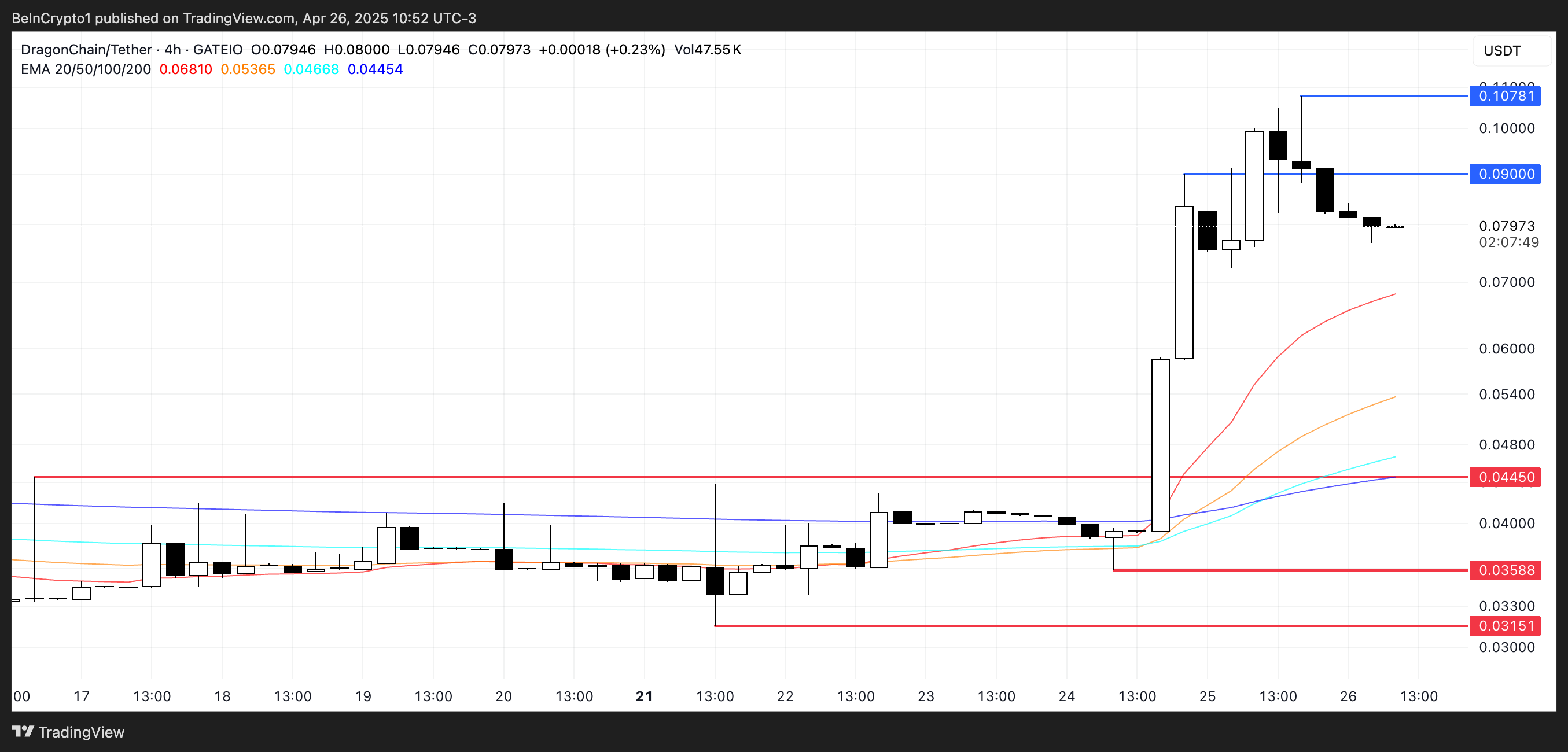 Om momentumet håller i sig, kan DRGN snart testa motstånd vid 0,090 USD och 0,107 USD, och kanske bryta över 0,11 USD för första gången sedan 2021.
