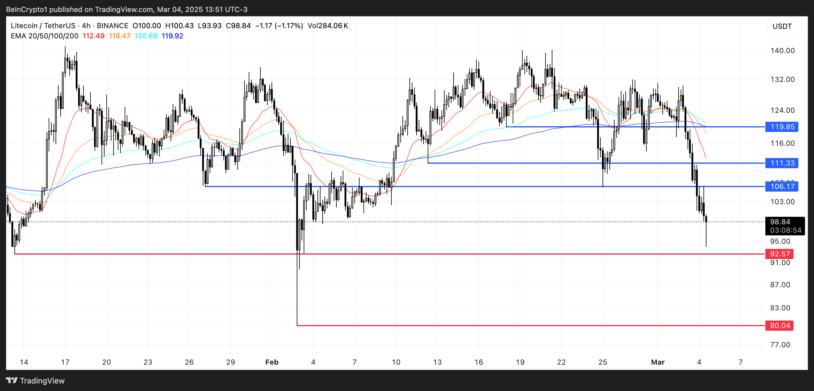 Men om LTC vänder sin trend kan det återfå momentum och pressa över 100 USD, med 106 USD som den första stora motståndsnivån.