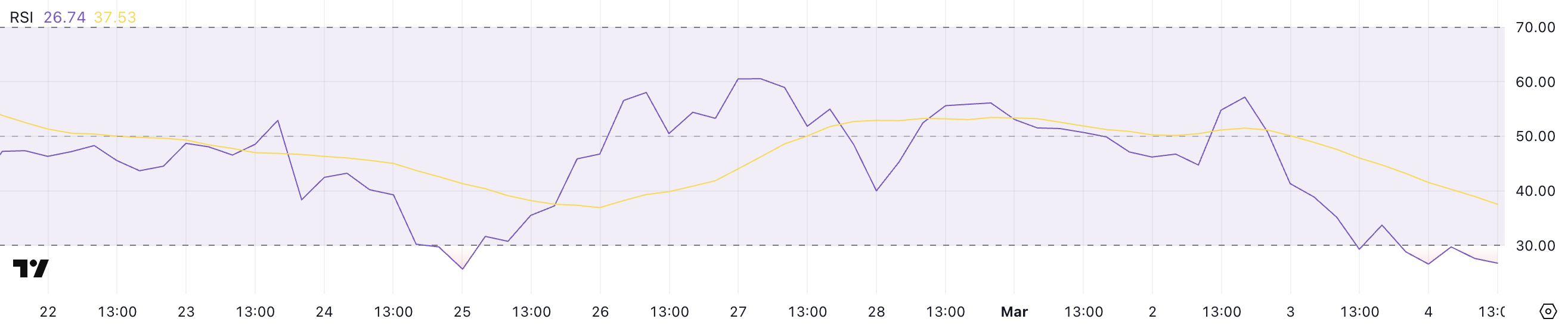 Men en så låg RSI signalerar också att tillgången kan närma sig en potentiell kortsiktig vändning, eftersom översålda förhållanden ofta leder till lättnadsrallyn.