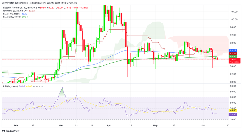 När Litecoin navigerar i turbulenta vatten framträder två huvudresultat. En avgörande uppgång över Ichimoku-molnet kan avsluta den nuvarande medellånga nedåtgående trenden och kickstarta en uppåtgående fas.