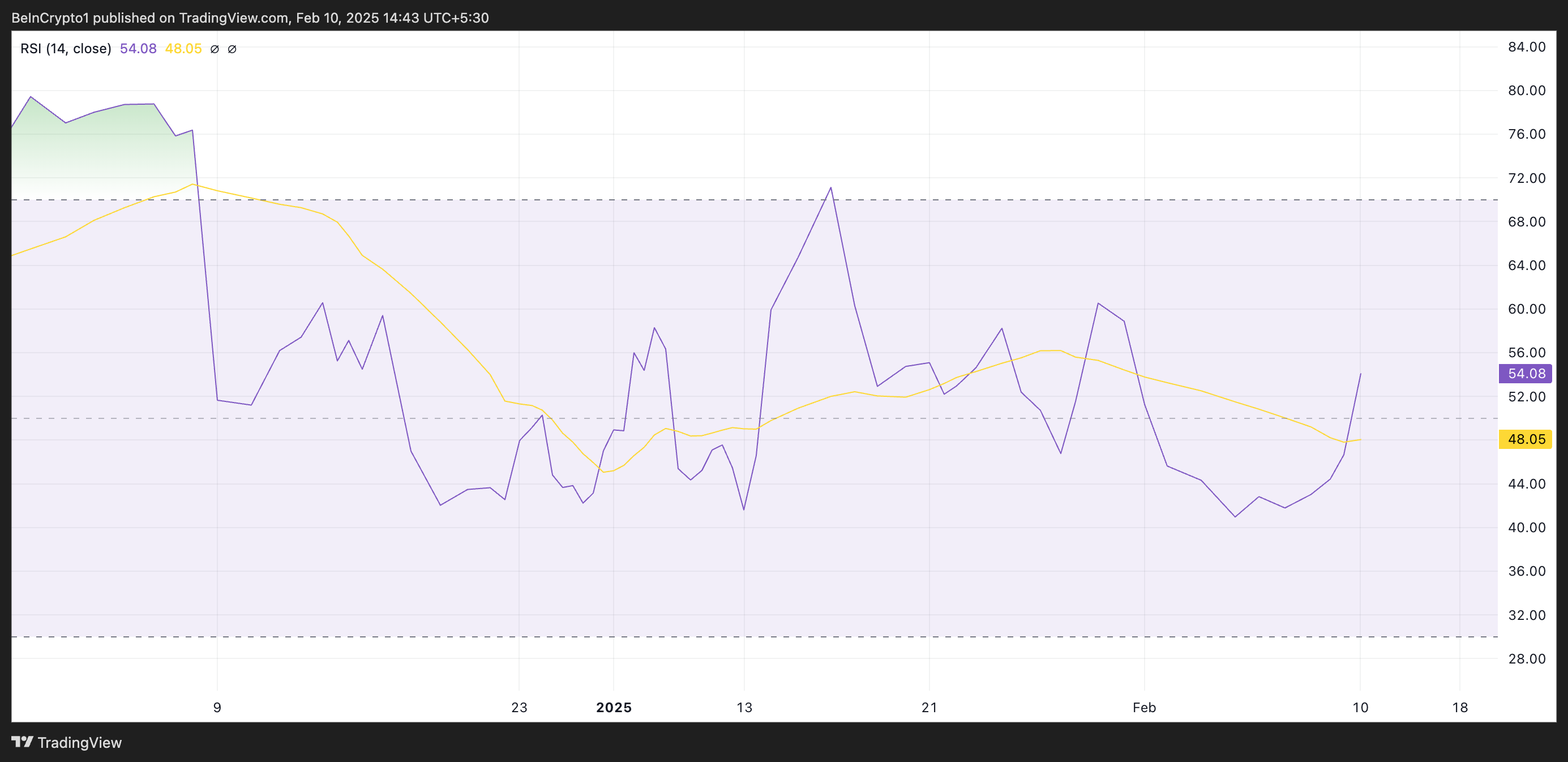 Vid 54,08 och stigande, antyder LTC:s RSI en måttlig positiv momentum. Det indikerar ökat köptryck med potential för ytterligare uppgång om trenden fortsätter.