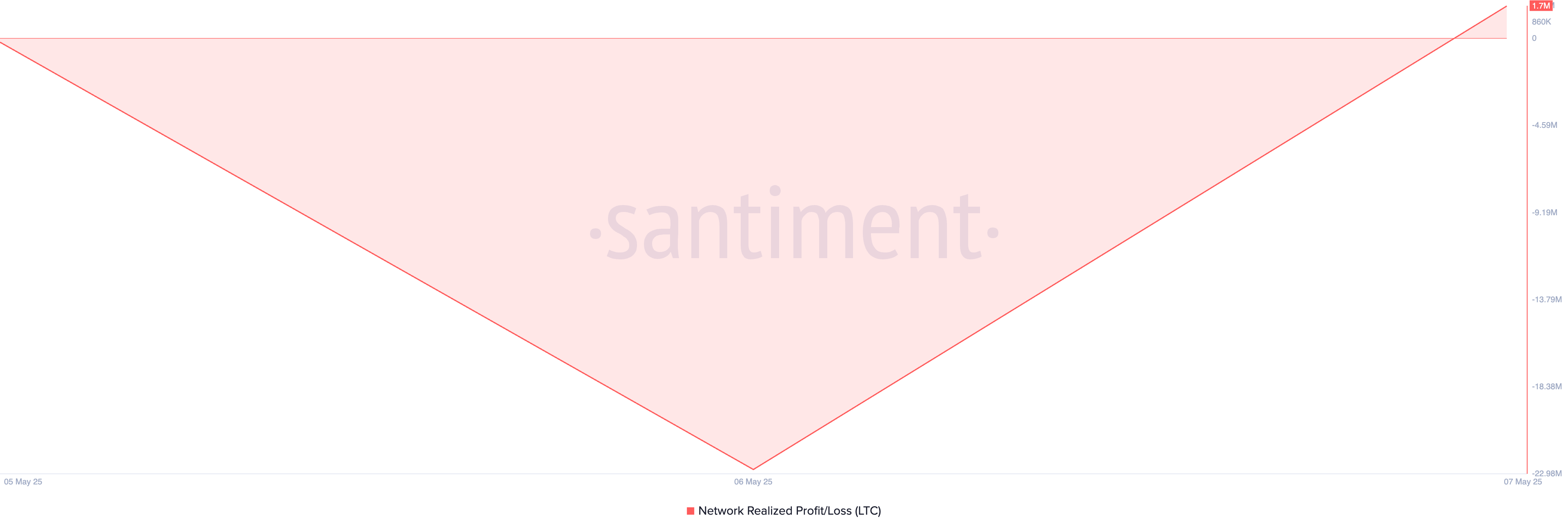Dessutom visar on-chain avläsningar att LTC:s Network Realized Profit/Loss (NPL) ökar, vilket indikerar att myntinnehavare sitter på orealiserade vinster och kan frestas att sälja. Vid pressens tidpunkt ligger NPL på 1,7 miljoner.