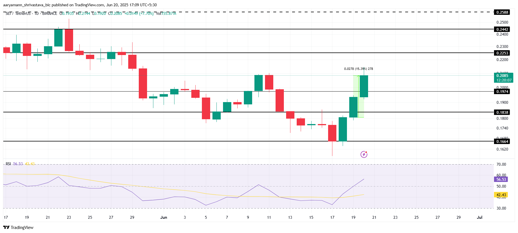 RSI har också klättrat över den neutrala nivån, vilket signalerar en övergång till den positiva zonen. Denna tekniska indikator tyder på fortsatt momentum för SEI på kort sikt.