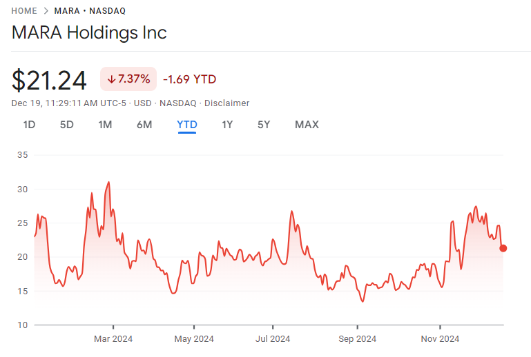 Dock har MARAs aktie inte haft en liknande uppgång trots sina kontinuerliga BTC-inköp. Ändå förblir Saylor optimistisk om MARA och förväntar sig att företaget ska nå samma bana som MicroStrategy.