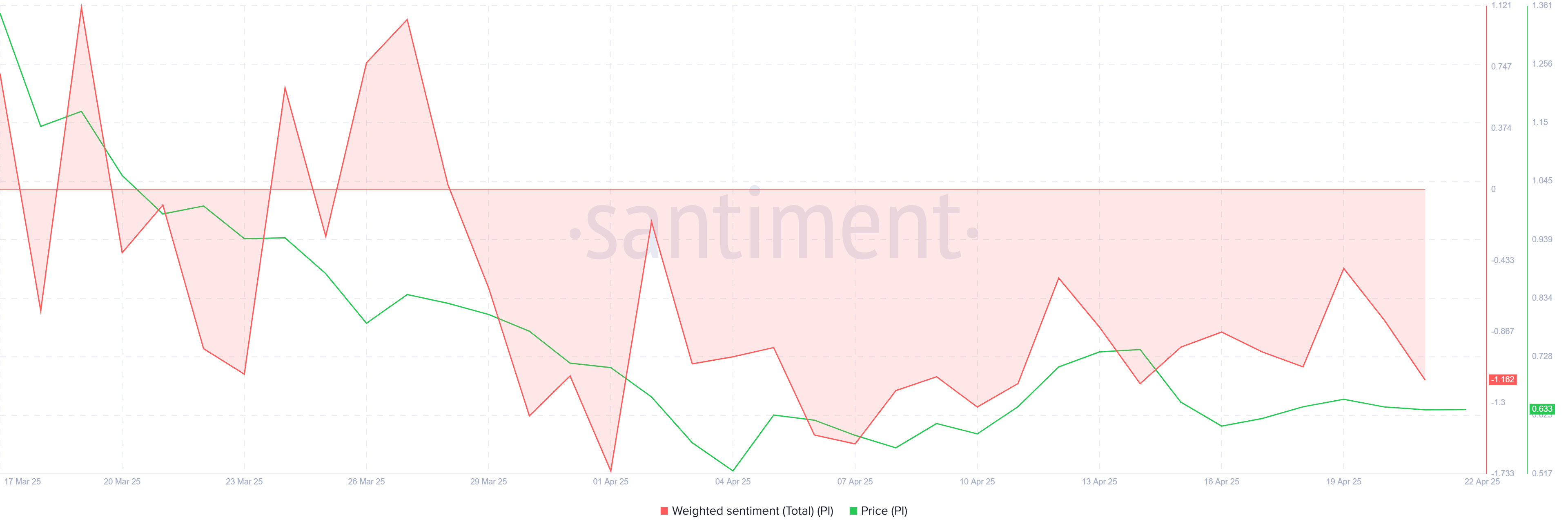 Pi Networks investerarkänsla har varit märkbart negativ den senaste månaden. Många ifrågasätter tokenens värde, särskilt med tanke på dess snabba förlust av lanseringshype. Detta, tillsammans med pågående volatilitet och brist på tydlig nytta, har lett till tveksamhet på marknaden.