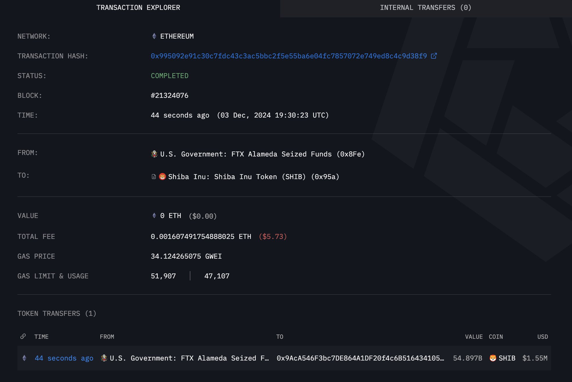 Ett nyligt drag av den amerikanska regeringen angående Shiba Inu har dragit uppmärksamhet till myntet trots att beloppet är relativt litet. Regeringen sålde SHIB-tokens som beslagtogs som en del av medlen från FTX Alameda-skandalen.