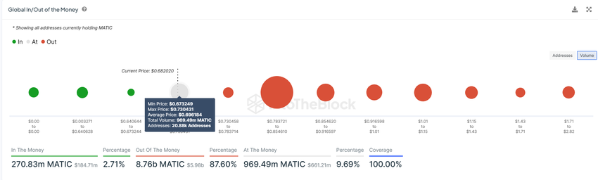 Utöver enkla möjligheter har investerarna en anledning att agera hausseartat eftersom nära 1 miljard MATIC är på väg att förlora vinster. Utbudet av 969 miljoner MATIC värda över 658 miljoner dollar köptes mellan $ 0.67 och $ 0.73.