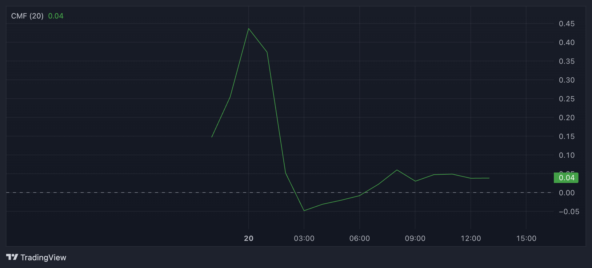 Vidare ligger MELANIAs Chaikin Money Flow (CMF) över nollinjen på 0,04 för närvarande, vilket bekräftar denna positiva utsikt. Denna indikator spårar också pengaflöden in i och ut ur en tillgång. När dess värde är positivt, indikerar det att köparaktiviteten överväger säljtrycket bland marknadsdeltagare.
