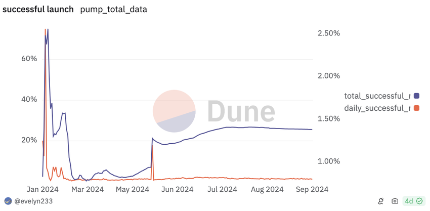 En annan kritisk statistik avslöjar att 98,6% av meme-mynten på vissa plattformar, som Solanas Pump.fun, inte ens lyckas lanseras framgångsrikt. Detta speglar hur enkelt det är att skapa meme-mynt men också utmaningarna med att föra dem till marknaden och bibehålla ett långsiktigt värde.