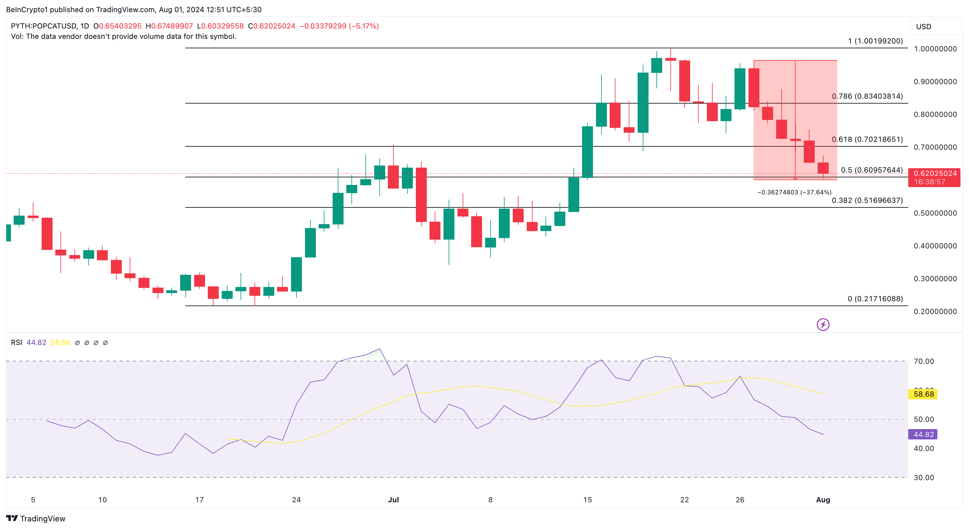 Vid presstillfället är POPCAT-priset $0,62. Detta värde motsvarar en minskning med 16,24 % under ovannämnda period. Men det finns mer.