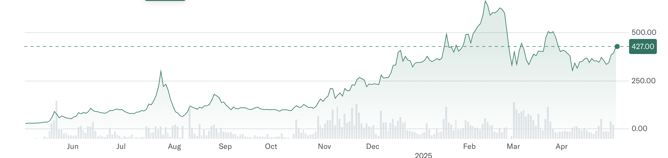 Samtidigt, sedan de började köpa BTC 2024, har företagets aktie, 3350.T, också sett en anmärkningsvärd tillväxt. Enligt Yahoo Finance har aktien ökat med 1 428,5 % under det senaste året. Dess prestation hittills i år har också varit imponerande, med en ökning på 22,9 %.