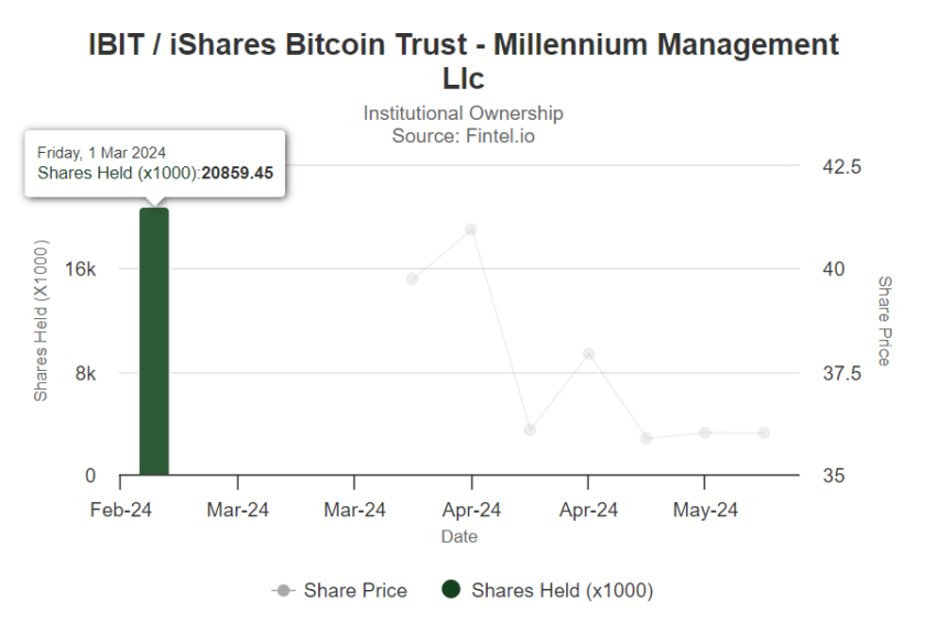 Millennium Management, ett globalt värdepappersföretag med över 60 miljarder dollar i tillgångar, har avslöjat sina betydande innehav i Bitcoin-börshandlade fonder (ETF) för första kvartalet 2024.