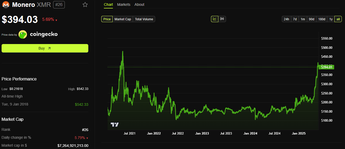 Trots den starka uppgången gjorde XMR:s ökning inte mycket väsen av sig på sociala medier. Få experter eller viktiga opinionsledare nämnde det. Denna uppgång handlar inte bara om priset — det speglar en större trend på kryptomarknaden: den växande efterfrågan på integritetsmynt.