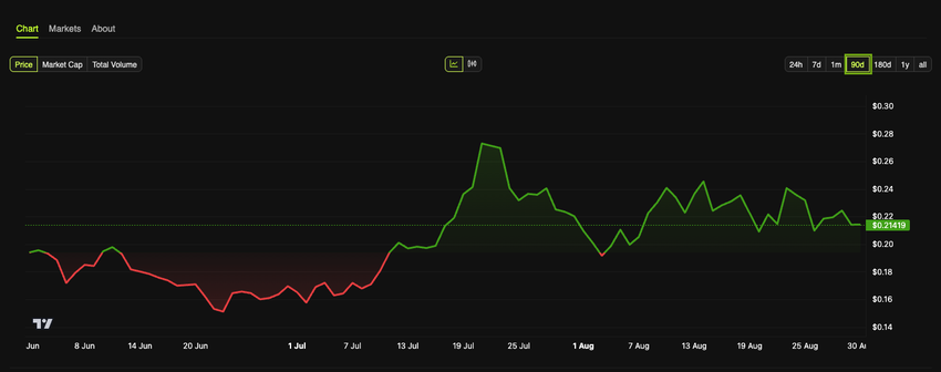 Dogecoin har hållit sig inom ett intervall sedan mitten av mars, fluktuerande mellan 0,15 och 0,25 USD.