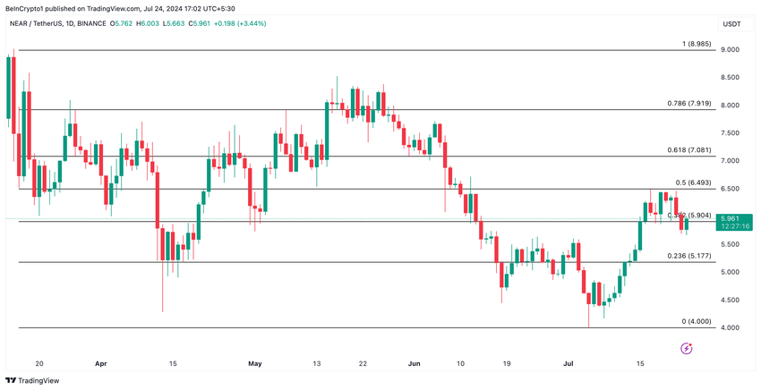 I skrivande stund handlas NEAR för $5,94. Myntets värde har sjunkit med nästan 5% under den senaste veckan.
