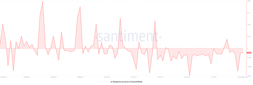 Denna efterfrågan på långa positioner har hållit i sig trots de baisseartade känslorna som fortsätter att följa NEAR. För att sätta det i ett sammanhang har myntets viktade sentiment varit övervägande negativt sedan den 24 juni. När detta skrivs är det -0,26.