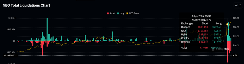 NEO: s pris handlas strax under $ 23.00 i skrivande stund, vilket potentiellt cementerar $ 22.63-nivån som stöd. Detta skulle göra det möjligt för altcoin att fortsätta med sitt rally och bryta igenom $ 24.22-motståndet för att nå $ 25.00.