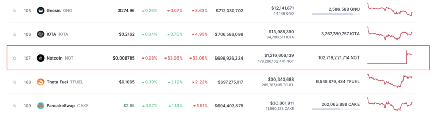 Notcoin bröt sig in på topp 10