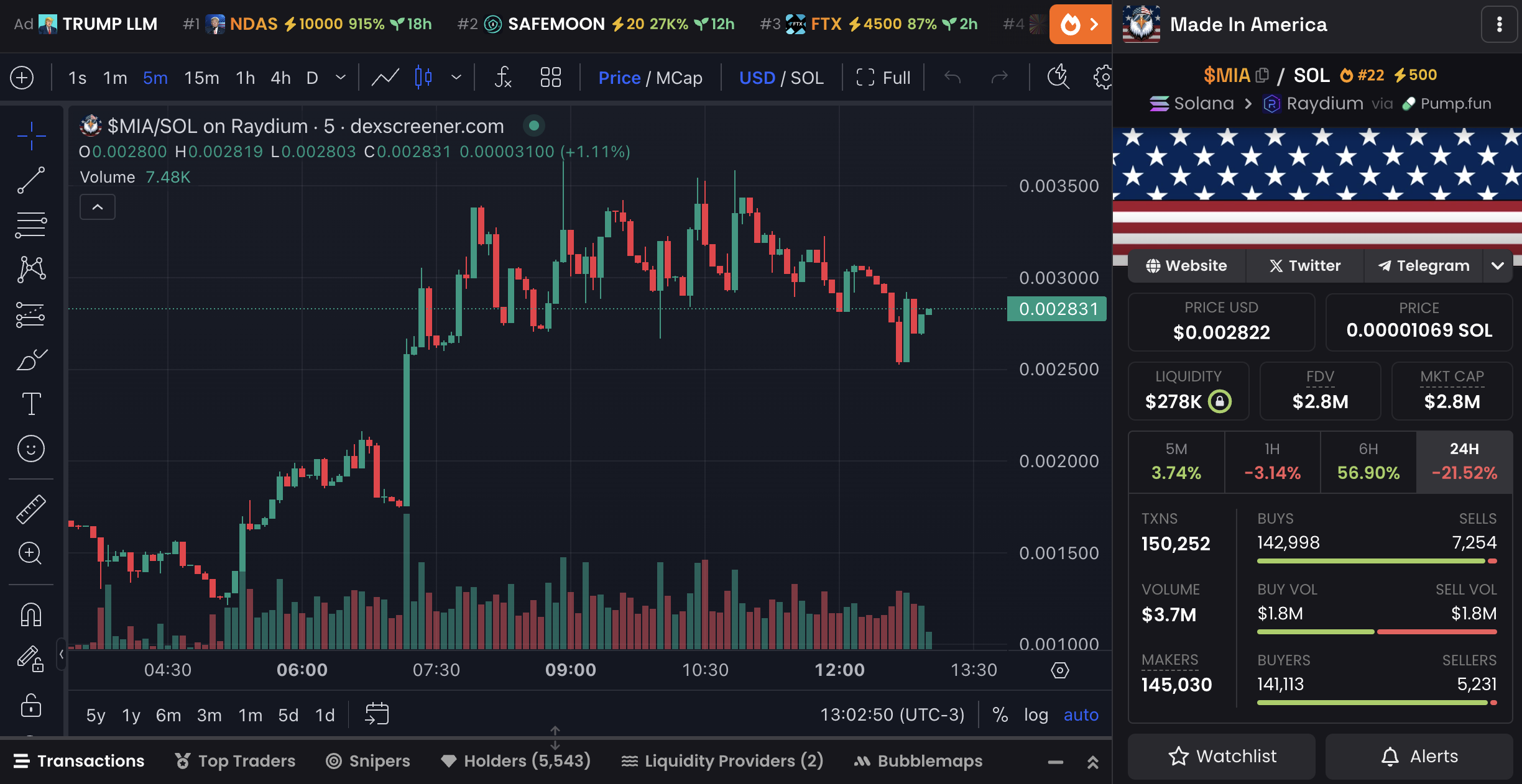 MIA, lanserad på Solana-blockkedjan, lanserades för bara fyra dagar sedan och siktar på att utnyttja “Made in USA”-berättelsen kopplad till Trump-administrationens kryptostrategi. Myntet positionerar sig som en amerikansk utfärdad tillgång som kan anpassa sig till potentiella policyförändringar som gynnar inhemska kryptoprojekt.