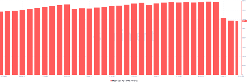 Enligt Santiment har 90-dagars MCA sjunkit i skrivande stund. Detta innebär att ONDO-innehavare avstår från att skicka tokens till börser. Istället verkar de vara fast beslutna att hålla dem i självvård.