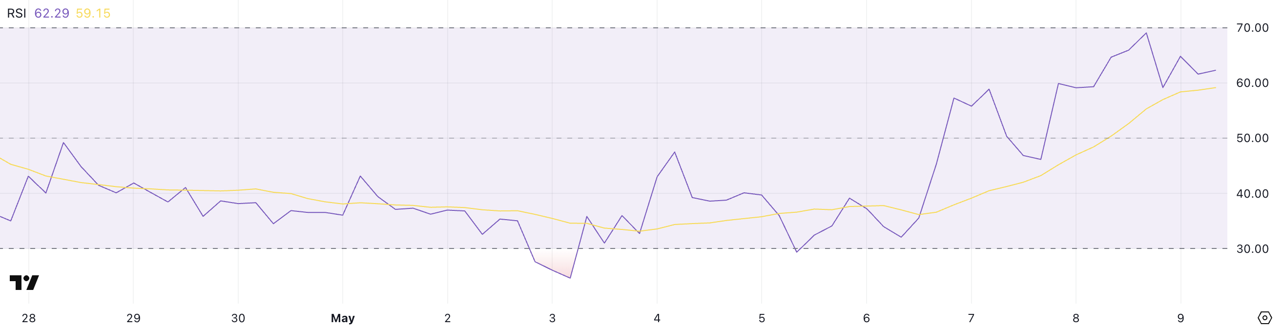 RSI är en allmänt använd momentumindikator som sträcker sig från 0 till 100—värden över 70 indikerar vanligtvis överköpta förhållanden, medan nivåer under 30 antyder att tillgången kan vara översåld.