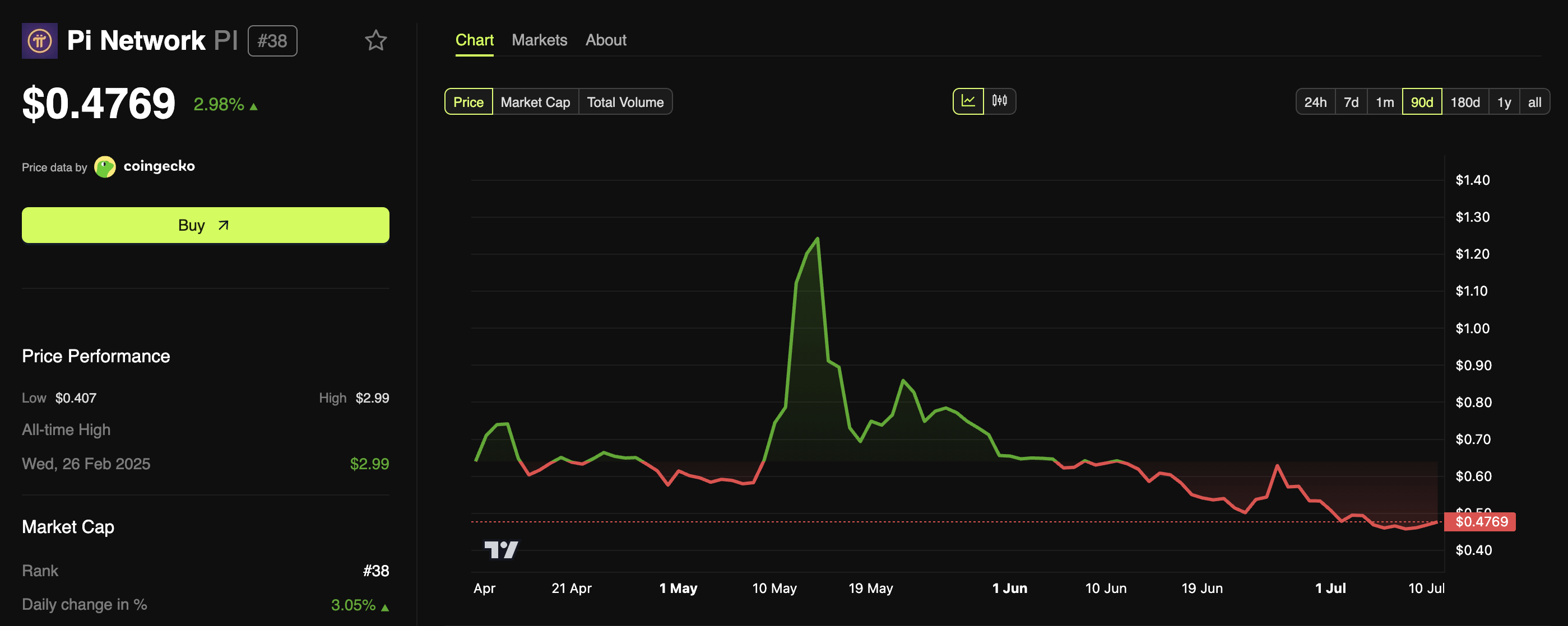 Samtidigt har PI visat tecken på återhämtning. BeInCrypto-data visade att priset steg 2,98 % under det senaste dygnet. Vid pressens tidpunkt var Pi Coins handelspris 0,47 USD.