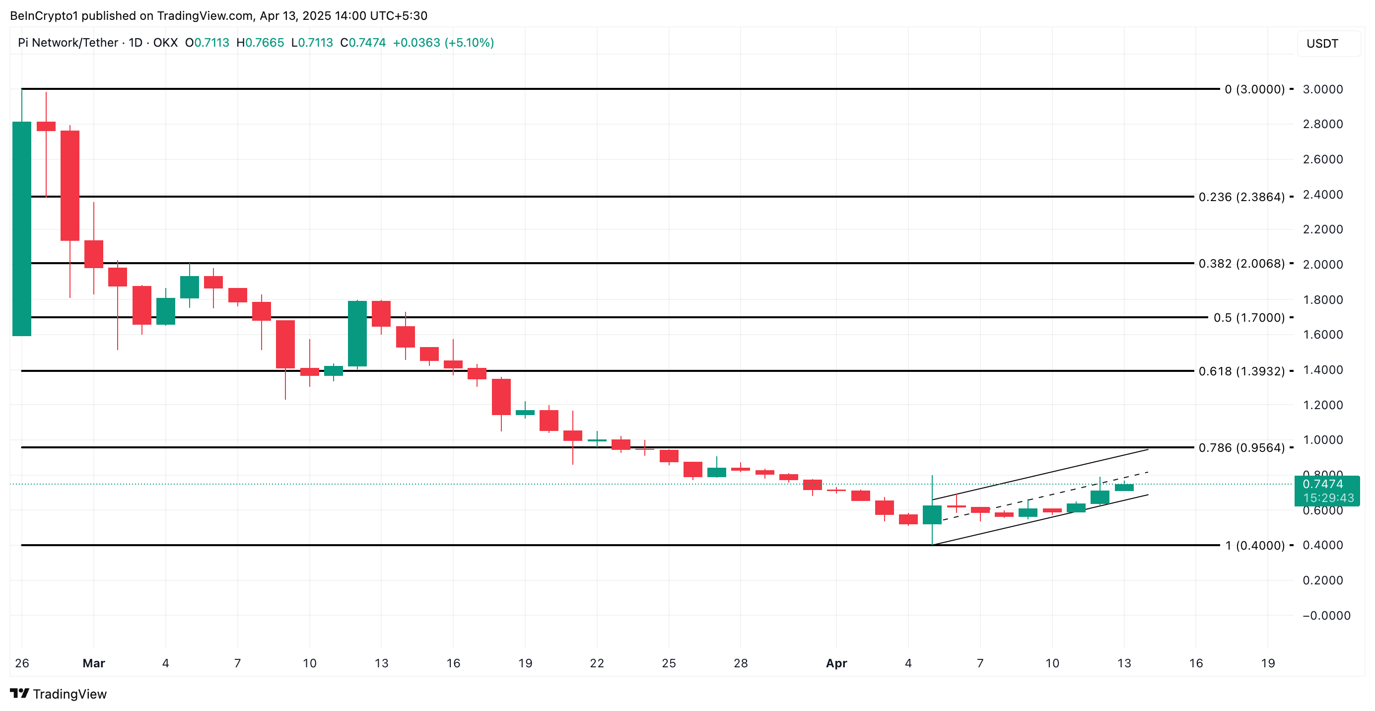 PI har gjort en anmärkningsvärd comeback efter att ha sjunkit till ett rekordlågt värde på 0,40 USD den 5 april. Under den senaste veckans bredare marknadsåterhämtning har altcoinet sett en ökad efterfrågan, vilket har drivit upp priset med 84 % från sin senaste botten.
