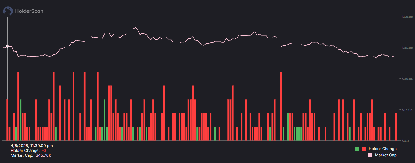 Enligt senaste Holderscan-data har Pi Network haft svårt att behålla sin investerarbas. Under den senaste månaden har altcoin sett ett stadigt antal utträden, och det totala antalet innehavare ligger runt 14 952. Trots vissa mindre fluktuationer har bristen på nya investerare skapat en miljö av skepsis.