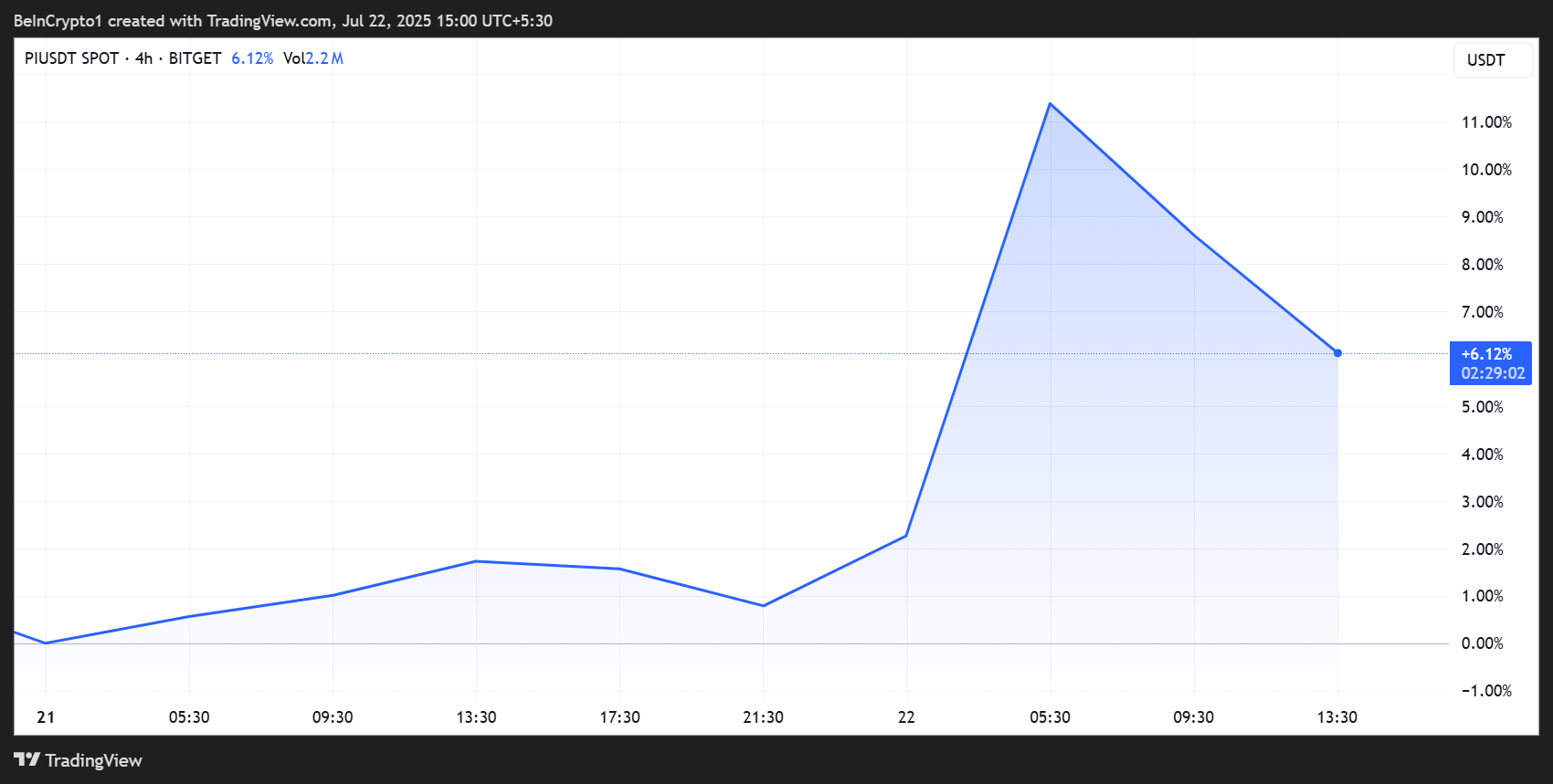 Uppgången kom eftersom denna funktion förväntas göra Pi-köp mer tillgängliga, vilket kan driva högre efterfrågan. Men tidig vinsthemtagning satte in, vilket fick Pi Coin-priset att korrigera.