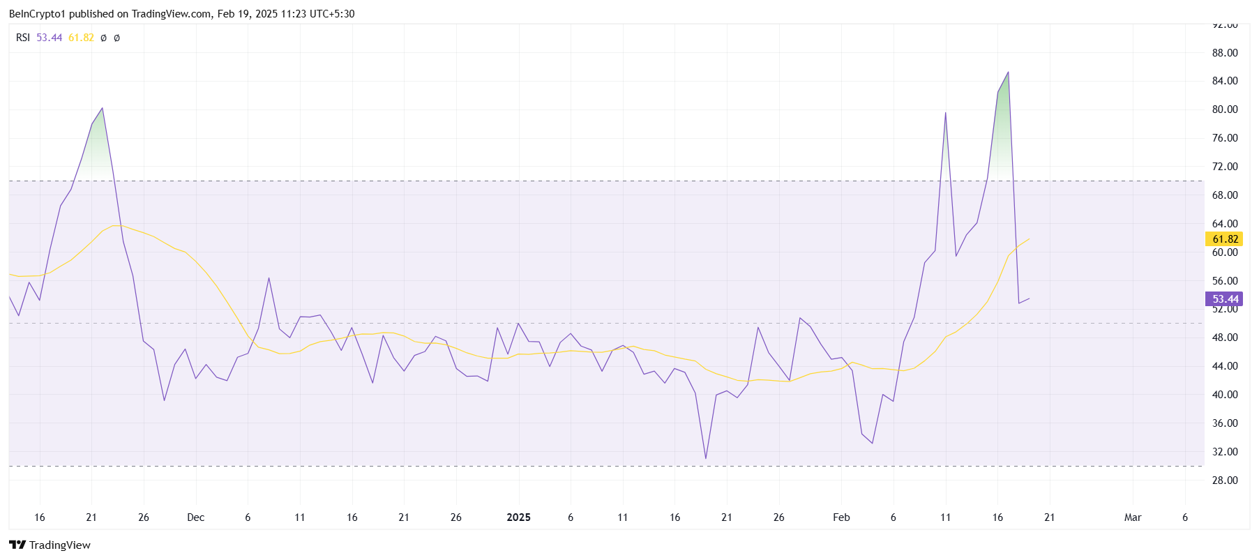 Även om RSI fortfarande ligger över den neutrala linjen vid 50,0, verkar den övergripande negativa trenden öka. När priset fortsätter att fluktuera, tyder RSI:s rörelse på att den negativa känslan kring token kan leda till ytterligare nedgångar.