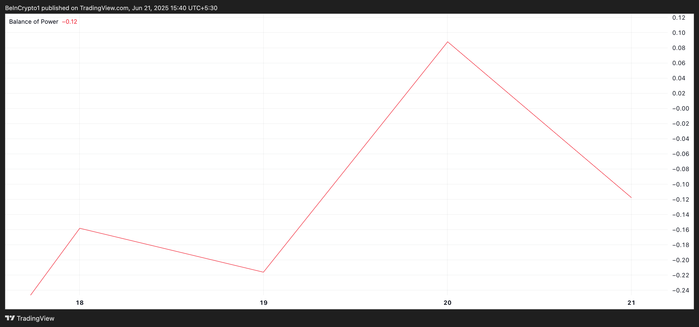 Vidare visar pi:s negativa Balance of Power (BoP) att säljare fortfarande har kontroll. Vid denna skrivning är indikatorn på -0,12.